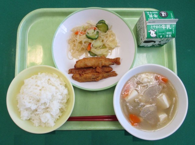 5日(水)今日の給食 公開日 2025/11/05 更新日 2025/11/08 東部中学校の様子 今日の献立は、「ごはん、牛乳、わかさぎのフリッター、バンサンスー、サムゲタンスープ」でした。「サムゲタンスープ」は、生姜とにんにんくの風味が効いていて、とても身体が温まりました。
