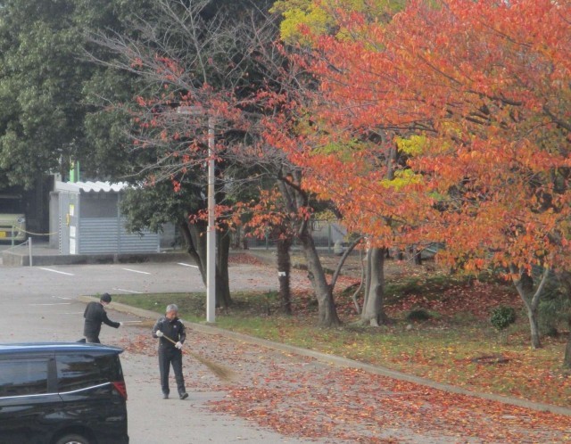 11日(火)落ち葉掃き 公開日 2025/11/11 更新日 2025/11/22 東部中学校の様子 3年生の生徒が先生と一緒に、たくさん積もった駐車場の落ち葉を掃いてくれていました。いつもありがとう。