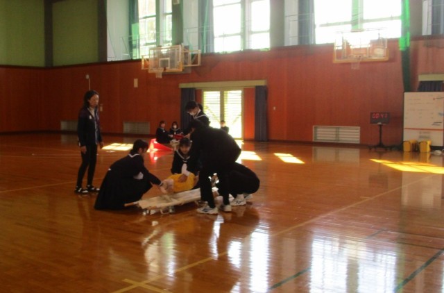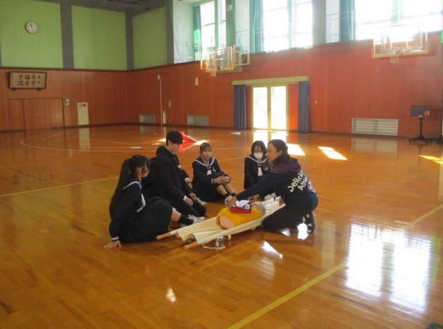2年生は、保健体育の授業で、人形やAEDを使って実際に体験しながら救命処置を学びました。