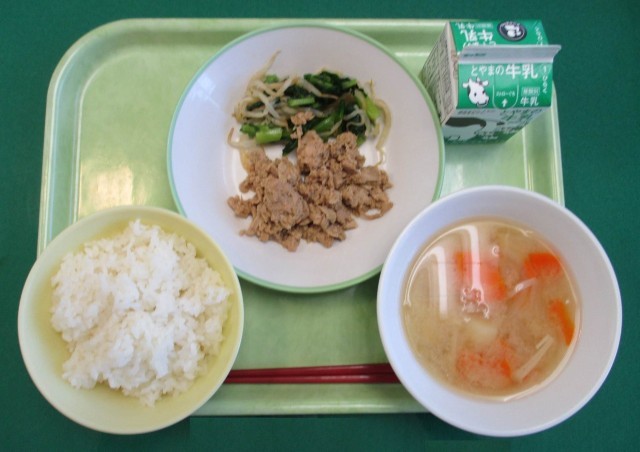 20日(木)今日の給食 公開日 2025/11/20 更新日 2025/11/20 東部中学校の様子 今日の献立は、「ごはん、牛乳、焼き肉丼、ナムル、具だくさん汁」でした。「具だくさん汁」には、玉ねぎ、人参、じゃが芋、えのきたけなどが入っていて、本当に具だくさんで食べ応えがありました。
