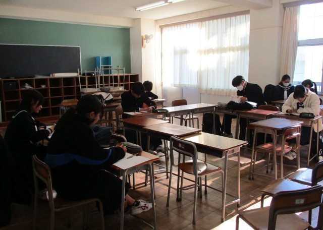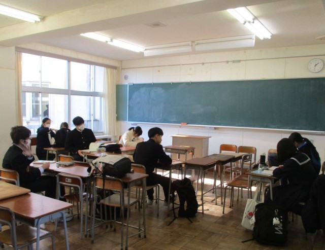 3年生は、今日も進路相談会の待ち時間に、学年室で自主学習に励んでいました。