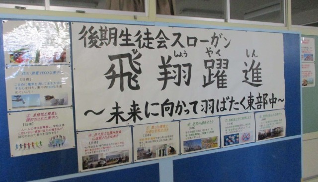 「飛翔躍進~未来に向かって羽ばたく東部中~」です。