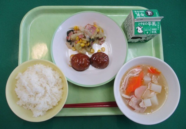 3日(水)今日の給食 公開日 2025/12/03 更新日 2025/12/03 東部中学校の様子 今日の献立は、「ごはん、牛乳、鶏つくね、野菜炒め、豚汁」でした。「豚汁」は、具だくさんで生姜の風味が効いていて、とてもおいしく身体も温まりました。