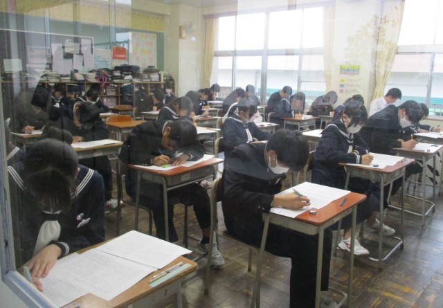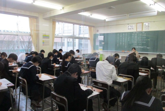 3年生は、1~5限に社会・国語・理科・英語・数学の順で、確認テストを行いました。