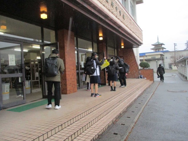 10日(水)登校の様子 公開日 2025/12/10 更新日 2025/12/10 東部中学校の様子 生徒たちの登校時の終盤には、ぽつぽつと雨が降り出しました。今日は、3年生が書道の授業で、教育サポーターの先生にご指導をしていただきます。5・6限に、1年生が産婦人科医による講演会を行います。