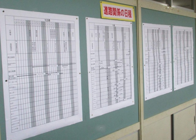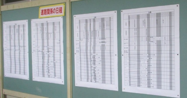 3年生の学年室前の廊下に、進路関係の日程が掲示されています。