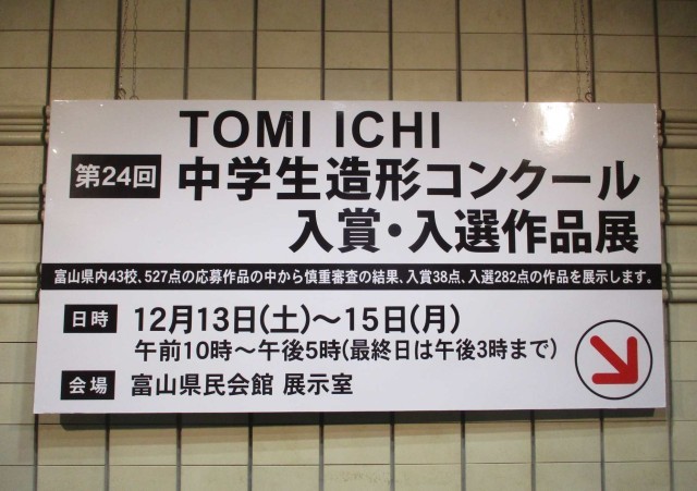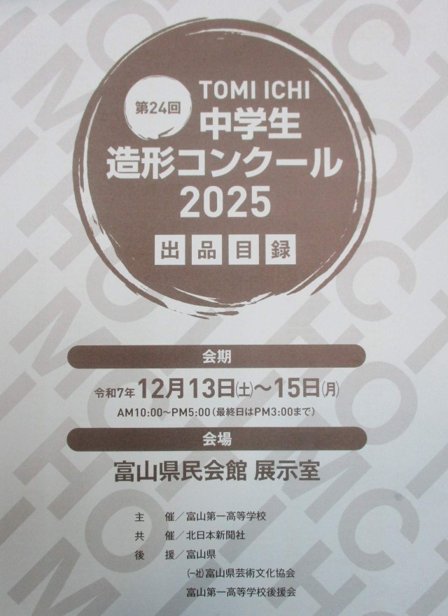 13日(土)TOMIICHI中学生造形コンクール【美術部】 公開日 2025/12/13 更新日 2025/12/14 部活動 富山県民会館で「TOMIICHI中学生造形コンクール」の入選作品が展示されています。本校からも美術部の生徒の作品が、まんが部門で金賞を受賞、絵画部門で2作品が入選しました。とてもステキな作品に仕上がっています。 +2