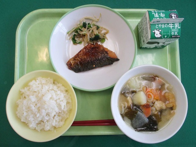23日(火)今日の給食 「給食最終日」 公開日 2025/12/23 更新日 2025/12/23 東部中学校の様子 今日の献立は、「ごはん、牛乳、さばの塩焼き、しょうがひたし、みそ汁」でした。「みそ汁」には、大根、人参、わかめ、ねぎ、じゃが芋、うす揚げも入っていて、具だくさんで食べ応えがありました。今日は、2学期の給食最終日でした。今学期も、おいしい給食をありがとうございました。