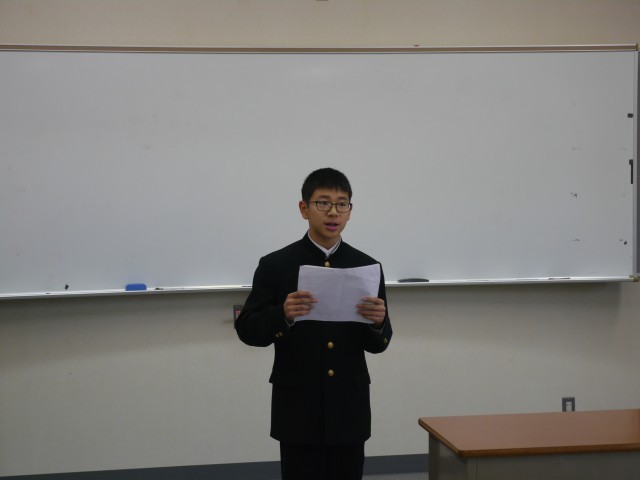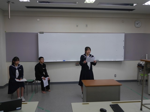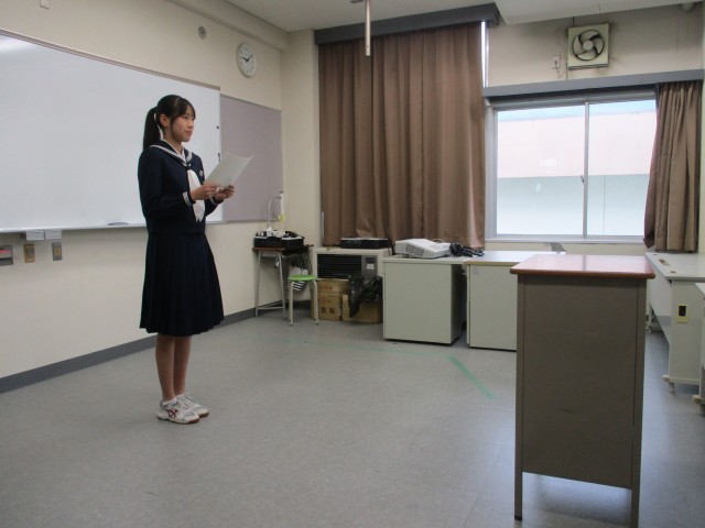 各学年の代表生徒が、2学期に頑張ったことを発表しました。