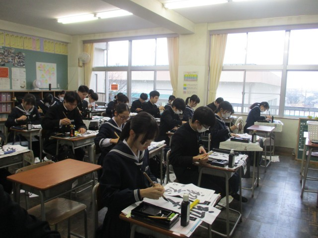 どの学級も心落ち着かせて、黙々と筆を走らせていました。