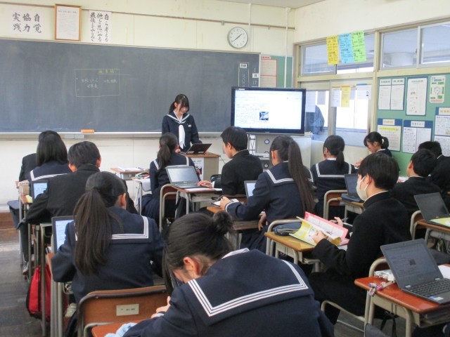 クロムブックを用いて、大きな声でしっかりと発表していました。
