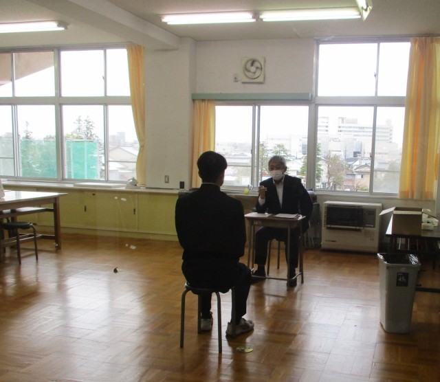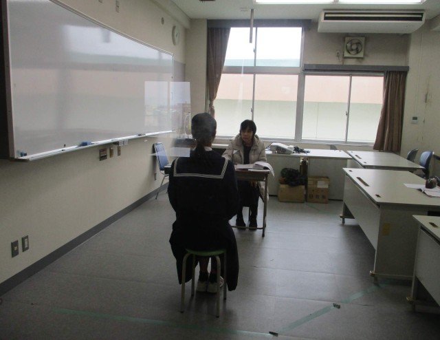 3年生の推薦入試を受検する生徒たちは、進路懇談会が行われている時間帯に、面接練習を行っていました。