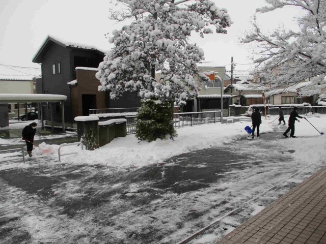 今日は、2年3組と3年生の有志の皆さんが除雪作業を行ってくれました。