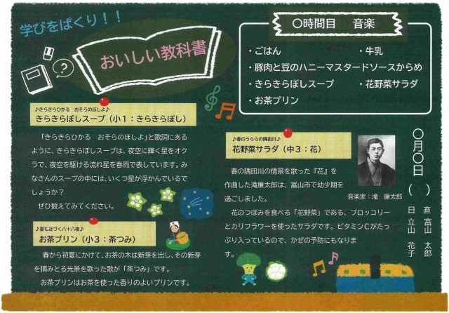 26日(月)今日の給食「学びをぱくり!おいしい教科書」【音楽】