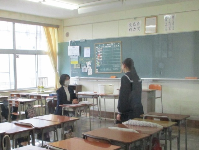 3年生は、1週間後に行われる県立高校推薦入試に向けて、面接練習を行っていました。
