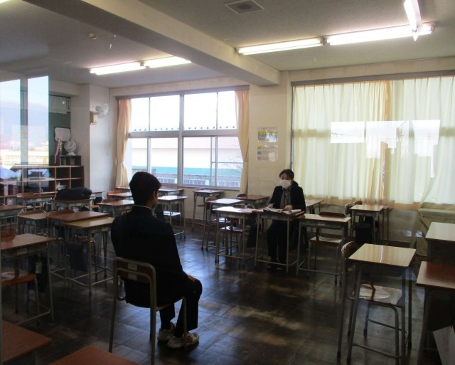 放課後に推薦入試を受検する3年生の生徒たちが面接練習を行っていました。