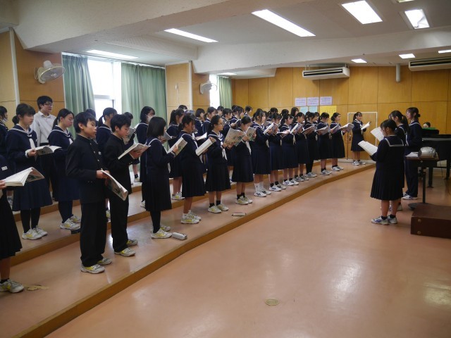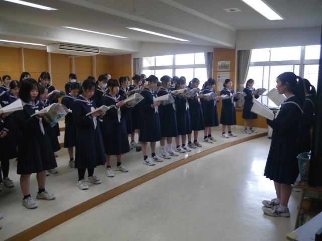 6日(金)在校生合唱練習 公開日 2026/03/06 更新日 2026/03/06 東部中学校の様子 5限に、1・2年生が卒業式で合唱する『マイバラード』の練習をしました。2年生のパートリーダーが中心になって練習を進めていました。