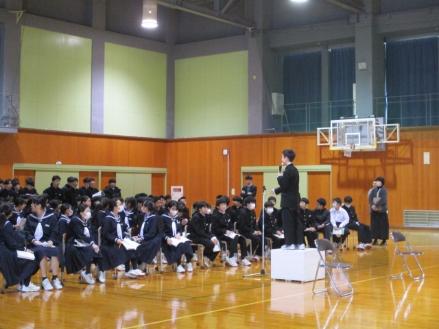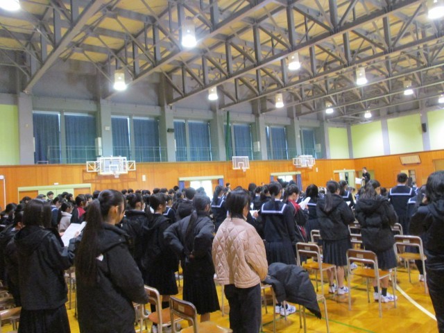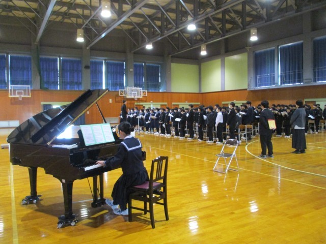 9日(月)在校生合唱練習 公開日 2026/03/09 更新日 2026/03/09 東部中学校の様子 1・2年生は、全パートが揃って体育館で合同練習を行いました。2年生のリーダーが中心となって、歌詞をはっきり言うことや強弱記号、曲想を意識して合唱しました。