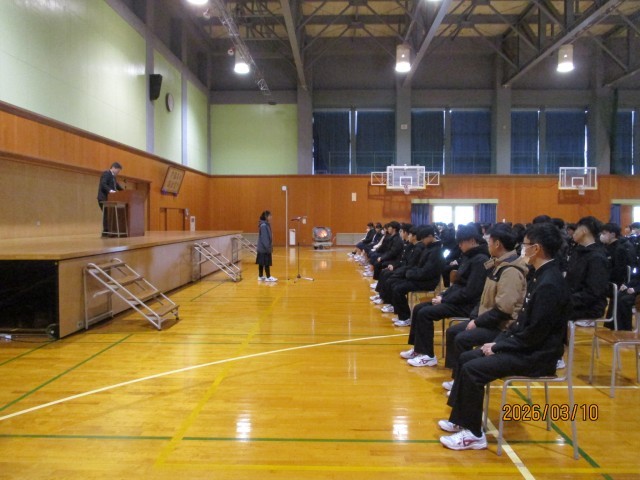 3限に、全学年が体育館で卒業式の練習を行いました。