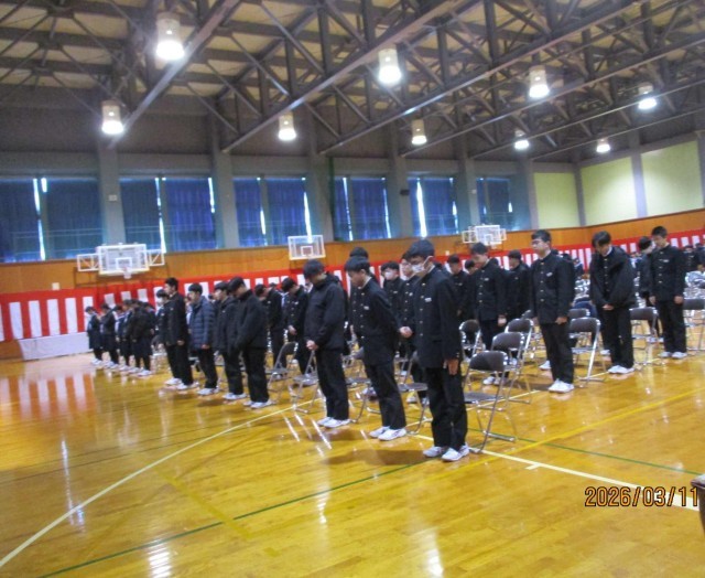 卒業式の予行練習後に、犠牲となられた全ての方々に対し、哀悼の意を表し、全校で1分間の黙とうを捧げました。