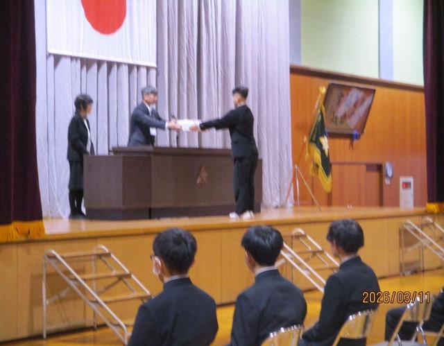 同窓会入会式に引き続き、奨学会卒業記念品授与式を行いました。