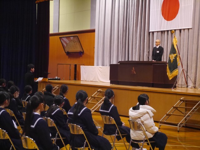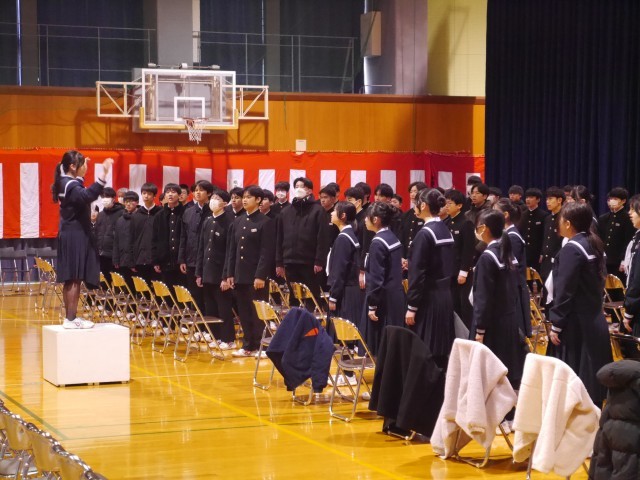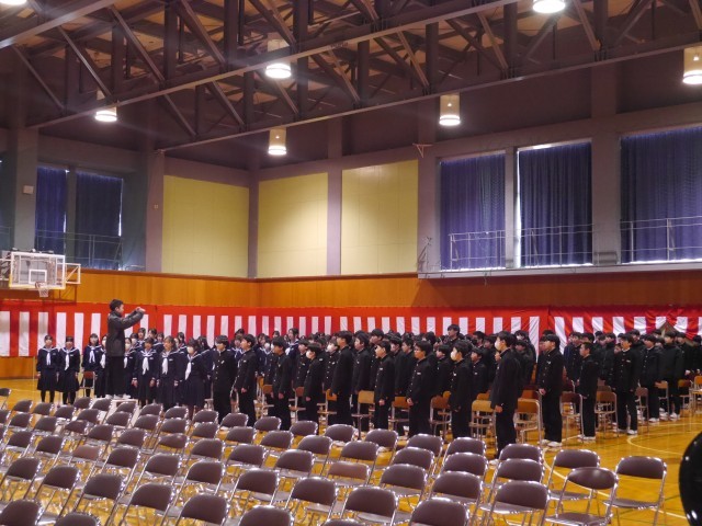 11日(水)卒業式予行 公開日 2026/03/11 更新日 2026/03/11 東部中学校の様子 厳粛な雰囲気の中、卒業式の予行練習を行いました。【写真1枚目:卒業証書授与】【写真2枚目:式辞・祝辞】【写真3枚目:在校生の合唱】【写真4枚目:答辞】【写真5枚目:卒業生の合唱】 +2
