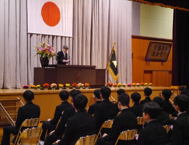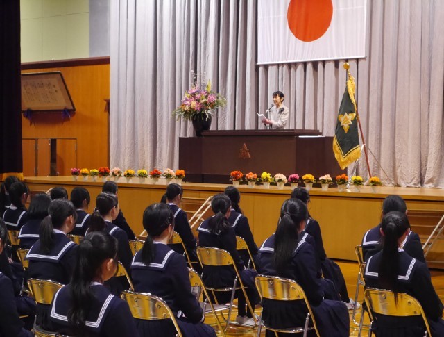 校長先生の式辞、奨学会会長様の祝辞の様子です。