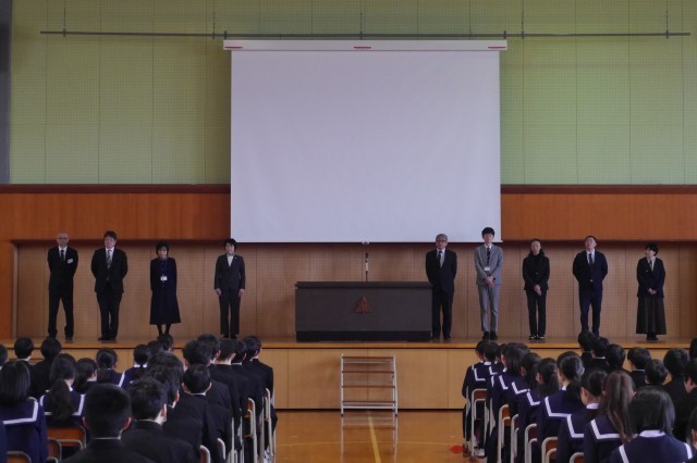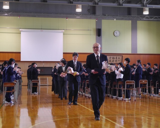 修了式の後、今年度末で退任・転任する12名の教職員の離任式を行いました。
