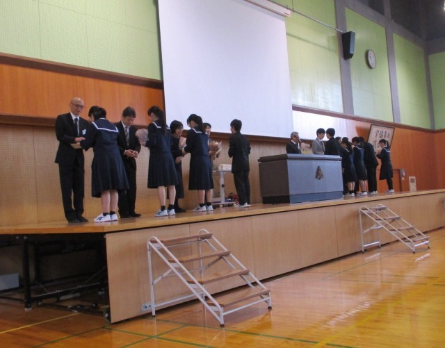 これまで大変お世話になった先生方へ代表生徒から感謝の言葉と花束を贈りました。