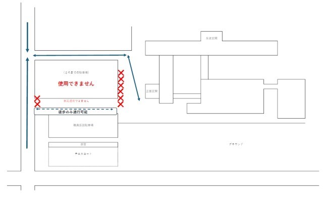 そのため、正門から正面玄関にかけての通路及び駐車場を閉鎖しています。