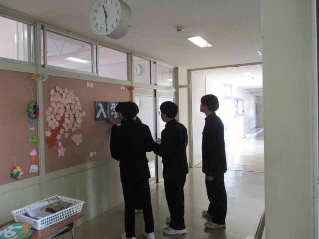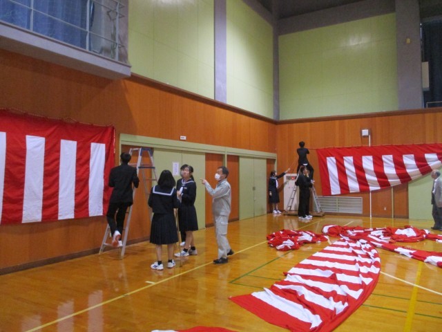 9日(木)入学式準備【2・3学年】 公開日 2026/04/09 更新日 2026/04/09 東部中学校の様子 明日行われる入学式に向けて、2・3年生が協力して、体育館のステージ幕と紅白幕張り、パイプ椅子の設営、教科書準備、教室・校舎内の清掃と飾りつけを行いました。 +4