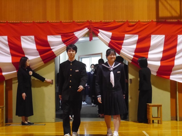 3年生の代表生徒を先頭に、新入生が入場しました。