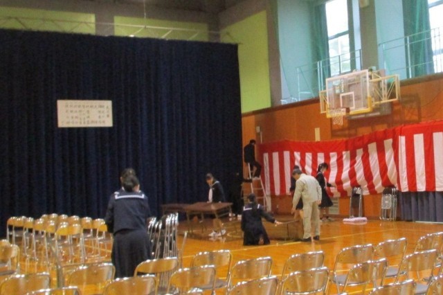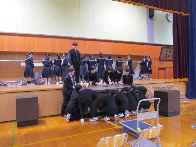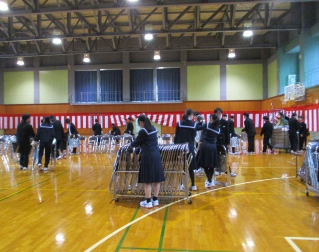 入学式後、3年生の生徒たちが準備した体育館の後片付けを協力してすばやく行ってくれました。