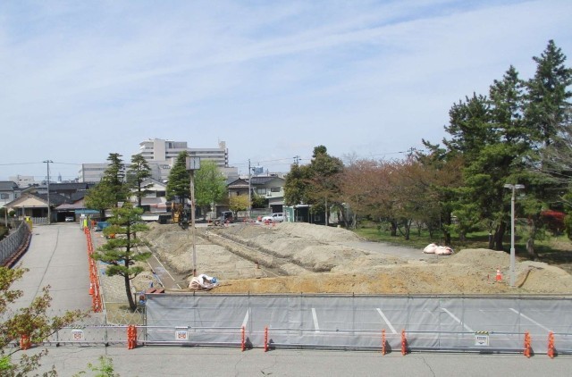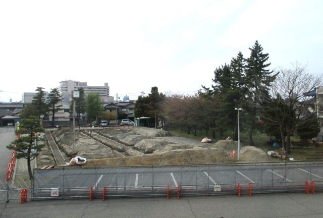 仮設のプレハブ校舎の建設に向けて、工事が着々と進んでいます。
