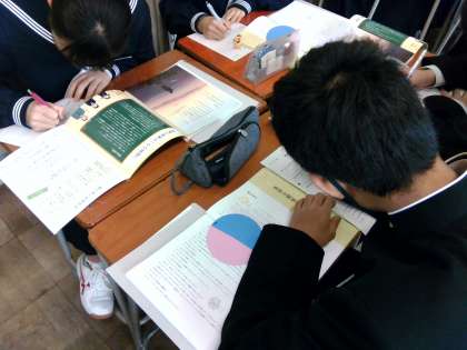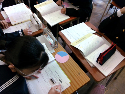 円グラフを利用して、自分の気持ちを班で共有しました。
