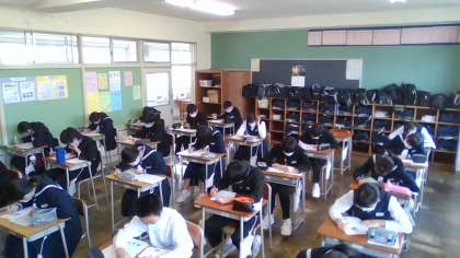 3年生は全クラス、社会の小テストを実施しました。 休み時間も一生懸命勉強している姿が見られました。