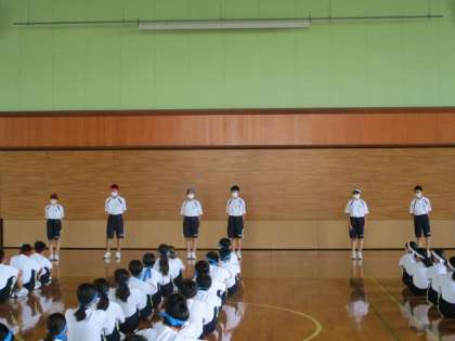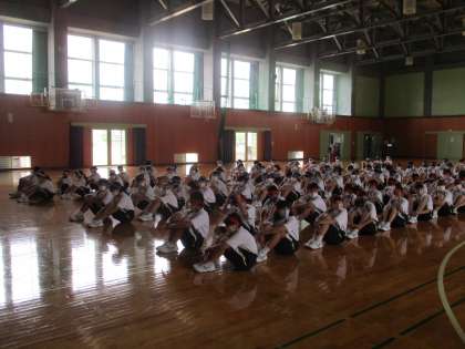 1年生は2限に体育大会の学年練習を行いました。各団の1学年団リーダーが挨拶をしました。