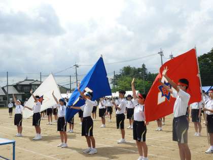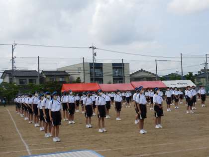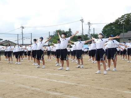 開会式、準備体操です。校長先生からの6つの目標達成を目指して、がんばりましょう。