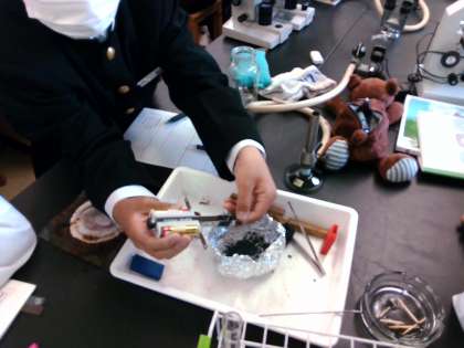 理科 鉄を燃やしたときの変化を見てみよう 公開日 2021/05/28 更新日 2021/05/28 2学年 スチールウールを燃やしたときの変化について実験しました。 燃えることによって性質が変わったことが確認できました。