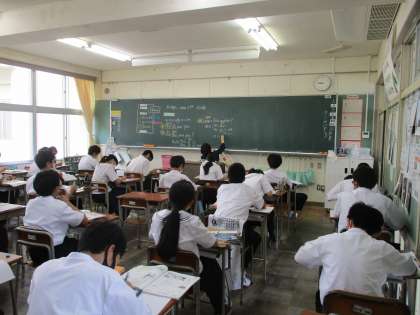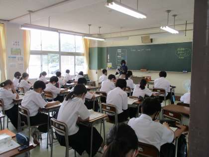 英語の授業ではみんな元気よく、活発な発声練習をしています。