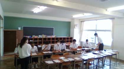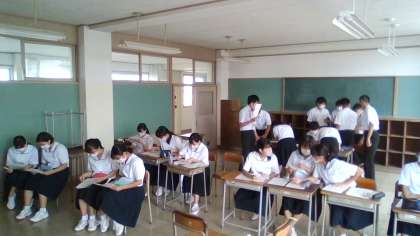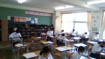 オープンハイスクールの各校の説明がありました。 待っている間は、真剣に自習をしていました。