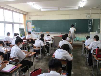 授業の様子 公開日 2021/07/14 更新日 2021/07/14 1学年 11H:社会 世界史 中国文明 古くから日本とは非常に関係が深い中国の 文明について学んでいます。 国の移り変わりを興味深く聞いています。 13H:書写 今日の課題「漢ワークを進めよう。」 漢字の書き取り読み取り練習、はっきりと書き 覚えることを考えて取り組んでいます。