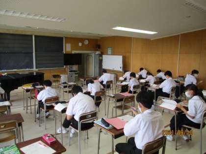 11H:音楽 12H:音楽 合唱コンクールの曲を聞いて気付いたことを書き、 どのように歌うかをまとめました。