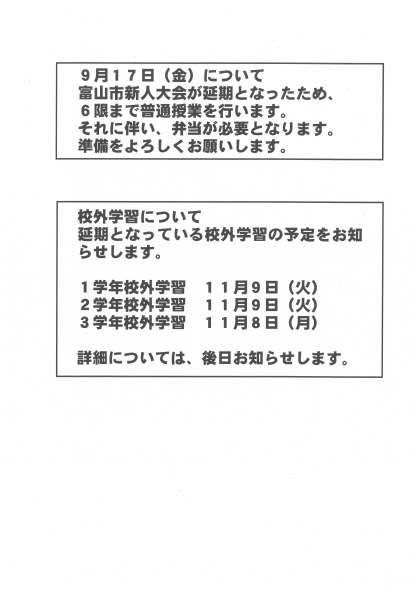 9月17日、校外学習の日程についてお知らせします。よろしくお願いします。