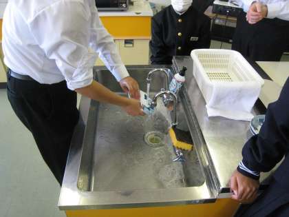 11H:家庭 「台ふき、皿洗いを正しくやろう。」