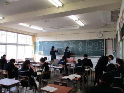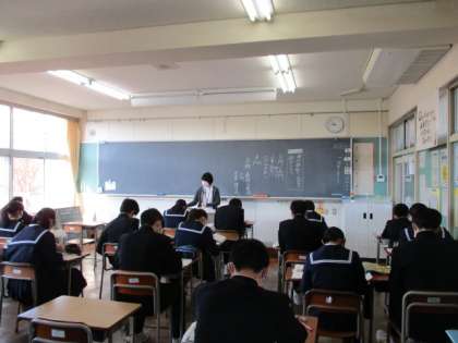 授業の様子 公開日 2021/11/19 更新日 2021/11/19 3学年 31H:数学 「弧と円周角の関係」 平行線の錯角や円周角の定理を用いて穴埋め問題を 解いています。 33H:国語 「現代語訳し、内容を読みとろう。」 おくのほそ道を題材にわからない言葉は辞書で調べ ながら現代語訳について学んでいます。