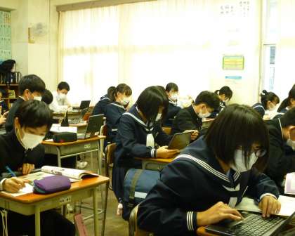 クロームブックや進路のしおりを活用し、高校について調べました。