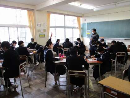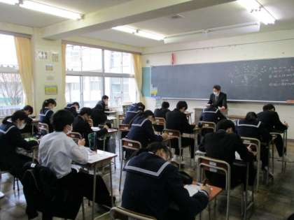 授業の様子 公開日 2021/12/21 更新日 2021/12/21 3学年 31H:英語 復習も兼ね英語での質問問題をグループで協力して解答 を考える授業をしています。 32H:理科 「地球の運動と天体の動き」の補充プリントを行い終了 後、模範解答にて問題の見直しに取り組んでいます。