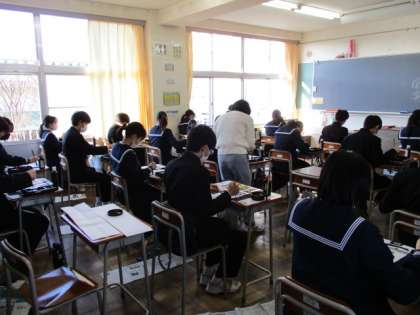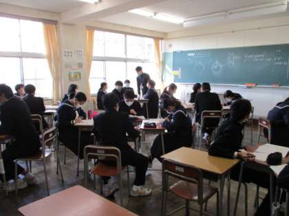 授業の様子 公開日 2021/12/23 更新日 2021/12/23 3学年 31H:数学 「水平線は何キロ先」 水平線までの距離の求め方を三平方の定理を利用し てグループで考えています。 32H:国語 「姿勢を正して行書の特徴である次の画に続く跡を 残そう」 行書の特徴を意識して習字授業に取り組んでいます。