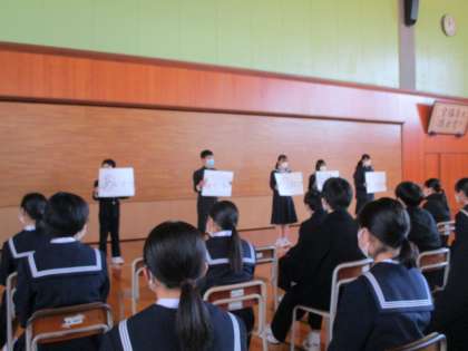 学年集会を行いました 公開日 2021/12/23 更新日 2021/12/23 2学年 2学期最後の学年集会です。 これまでの生活を振り返ってや、学習についてどういう姿勢で取り組むべきかなどの話をしました。